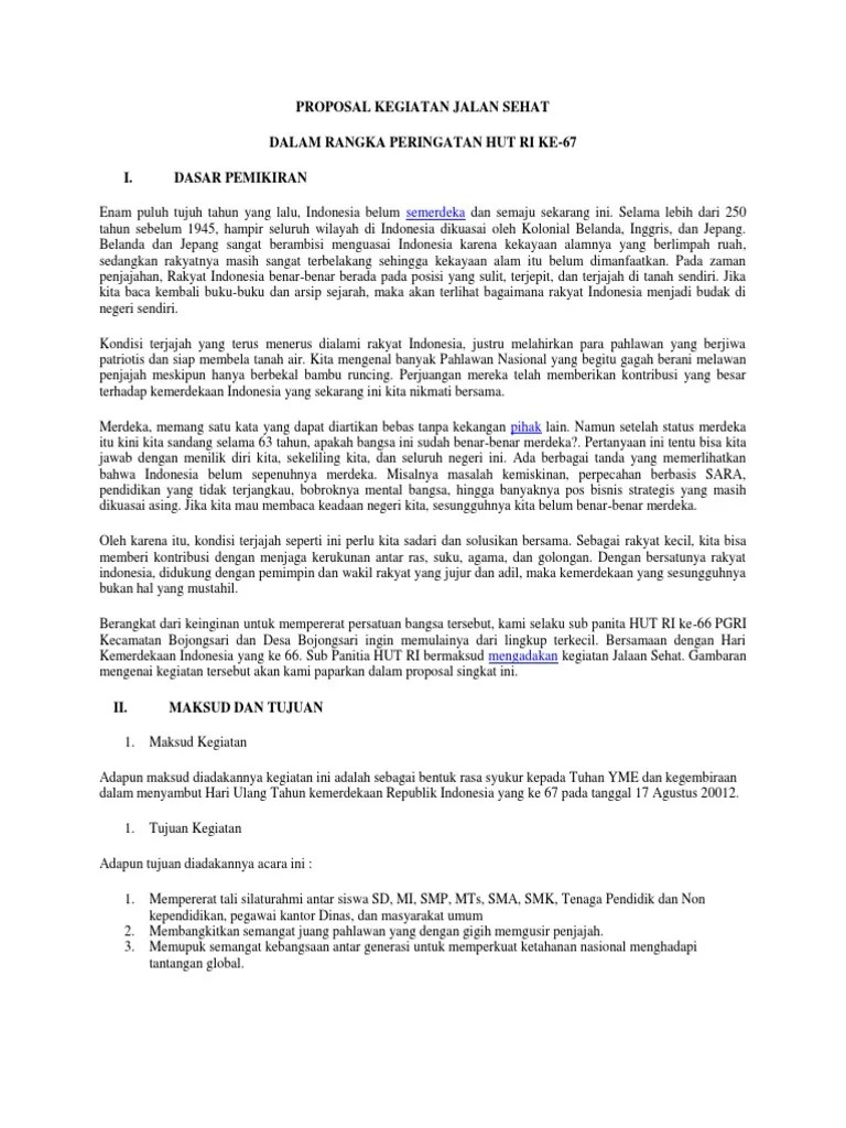 Proposal sederhana untuk panitia kecil persiapan hut kemerdekaan di kampung,deskripsi lengkap .